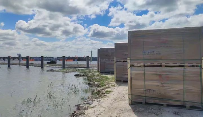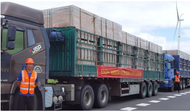 近期台风频繁登陆,我国北方地区多降大雨,部分货物运输道路被冲毁,该项目地处吉林省白城市,受到此次台风天气影响较大。为了保障项目顺利开工,本次供货采用了阳光能源专为大客户定制的物流服务网络,目前首批组件已准时抵达了项目现场,项目预计将于今年年底前竣工、并网。